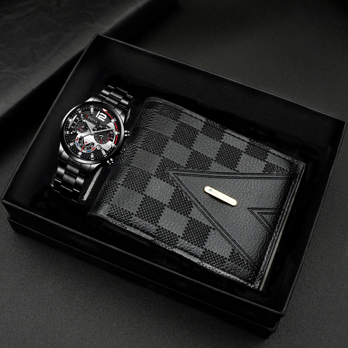 - Elegante y práctica caja de regalo para hombre compuesta por un reloj y una cartera.